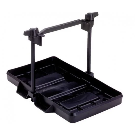 Der Attwood Batteriehalter ist höhenverstellbar, sodass er fĂŒr verschiedene Batterien geeignet ist. Abmessungen 308 x 171 x 210 mm.