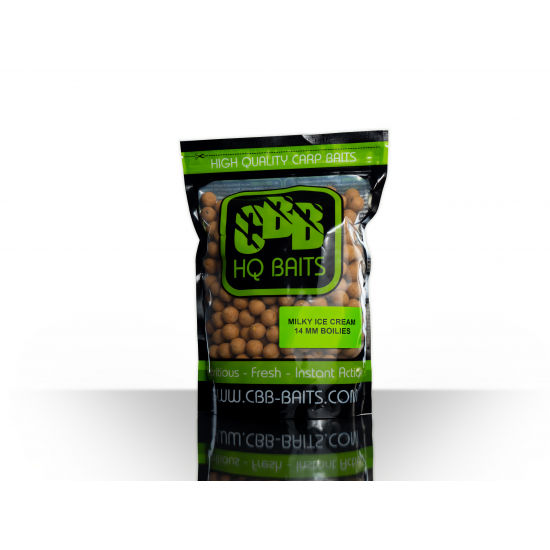 Suchen Sie einen cremigen, süßen Boilie? Dann ist das Milcheis genau das Richtige für Sie! Der einzigartige Geschmack, den wir in diesem Boilie verarbeiten, sorgt unter anderem dafür, dass Sie mit einem Köder fischen, den kein anderes Unternehmen herstellen oder liefern kann. Wir sind daher sehr stolz auf dieses Produkt. Sie können diesen Boilie das ganze Jahr über verwenden, obwohl wir empfehlen, ihn hauptsächlich bei sehr kalten Bedingungen zu verwenden. Die frühen Frühlings- und Wintermonate sind ideal, um mit diesem Boilie zu arbeiten. Der Boilie hat eine hohe „Durchlaufgeschwindigkeit“, da die Kugel aus leicht verdaulichen Mehlen besteht und die Kugel durch ihren hohen Milchpulveranteil sehr trübe wirkt. Der Karpfen wird daher viel kürzer gesättigt, so dass er mehr Bedarf hat, weiter zu fressen. Der Boilie hat eine hellbraune Farbe. Diese Farbe bildet einen schönen Kontrast zum Unterteil und sieht „ausgewaschen“ aus. Der Bulk Deal entspricht 6,50 € pro Kilo.