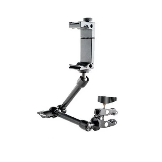 - Schrauben Sie nun die Halterung Ihrer Wahl (C-Klemme oder T-Schraube) und die Telefonhalterung an.