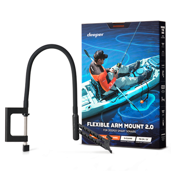 Verwandeln Sie Ihr Boot, Kajak oder Beiboot in ein Hochleistungs-Sonarsystem. Montieren Sie einfach Ihr Deeper Sonar (3.0, PRO oder PRO+), befestigen Sie den flexiblen Arm am Boot und verwenden Sie das Sonar, um unglaubliche Karten zu erstellen oder Fische zu verfolgen.