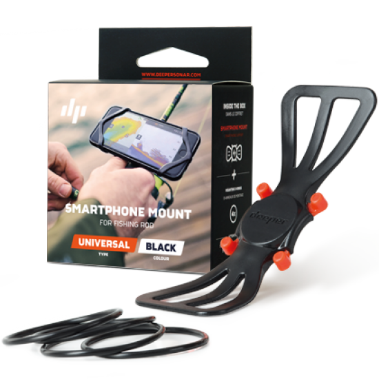 Die Deeper Smartphone-Halterung ist eine langlebige Lösung, um Ihr Smartphone am Griff einer Angelrute zu befestigen. Auf diese Weise können Sie die Sonardaten mit einer Hand steuern, während Sie eine Rute halten, und mit der anderen den Deeper einholen.