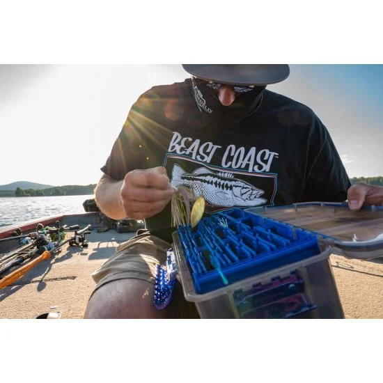Das Herzstück der Blade Krate sind die 21 Zerust-infundierten, korrosionsbeständigen Kunststoffordner, die entworfen wurden, um jeweils 2 Köder über integrierte Clips aufzuhängen. Die Blade Krate fasst 42 Köder auf einer kompakten Grundfläche, die in Standard-Tackle-Taschen und Bootsfächer passt. Das einfache, ergonomische Design der Blade Krate ermöglicht die Anpassung, um bis zu 3 große Aufbewahrungsfächer zu schaffen, wenn ein Teil der Ordner für alternative Aufbewahrungsoptionen entfernt wird. Die zielgerichtete Funktionalität des Blade Krate ordnet die Prioritäten des Anglers bequem neu: mehr Zeit beim Angeln und weniger Ärger mit einem Durcheinander von Haken und Ködern.