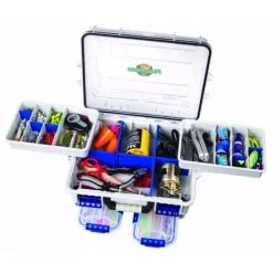 Die robuste, dickwandige Konstruktion und die um 360 Grad wasserdichte, luftdichte Gummidichtung machen diesen Organizer zu einem Muss. Abnehmbare Schwenkschalen halten den Köder leicht zugänglich und maximieren den Stauraum. Der eingelassene Deckel aus Polycarbonat dient als nahezu unverwüstliche Arbeitsfläche. Schwimmend und mit umspritztem Griff, Verriegelungsbügeln und Befestigungsflanschen. Ausgestattet mit patentierten Leitblechen der Zerust-Technologie.