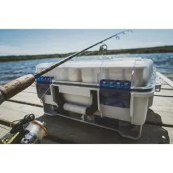 Die robuste, dickwandige Konstruktion und die um 360 Grad wasserdichte, luftdichte Gummidichtung machen diesen Organizer zu einem Muss. Abnehmbare Schwenkschalen halten den Köder leicht zugänglich und maximieren den Stauraum. Der eingelassene Deckel aus Polycarbonat dient als nahezu unverwüstliche Arbeitsfläche. Schwimmend und mit umspritztem Griff, Verriegelungsbügeln und Befestigungsflanschen. Ausgestattet mit patentierten Leitblechen der Zerust-Technologie.