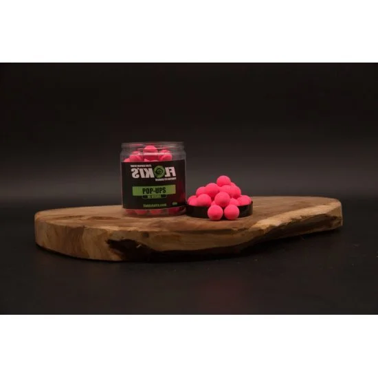 Flokis Maulbeer-Fluor-Pop-ups mit ihrer einzigartigen Mischung aus ätherischen Ölen und einer Reihe von wasserlöslichen Appetitanregern. Nahezu unwiderstehlich für Karpfen und aufgrund ihrer fluoreszierenden rosa Farbe optisch sehr gut wahrnehmbar.