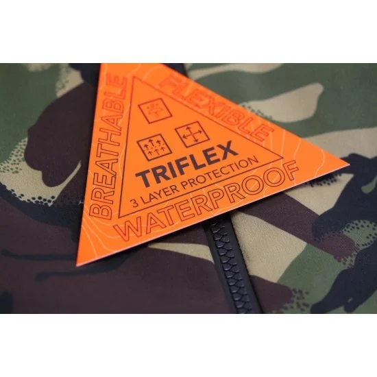 – De micro poriën in het membraan zijn zo klein, dat regendruppels niet naar binnen kunnen komen maar damp/zweet wel naar buiten kan. Geen enkel ander product in de hengelsport heeft deze extreme hoge ademende factor van 20.000 en dit maakt het grote verschil! Ongeacht de temperatuur geeft je lichaam ten alle tijden vocht af. Fortis’s unieke Triflex zorgt voor de meest optimale vochtafvoer, waardoor je droog en dus warm blijft.