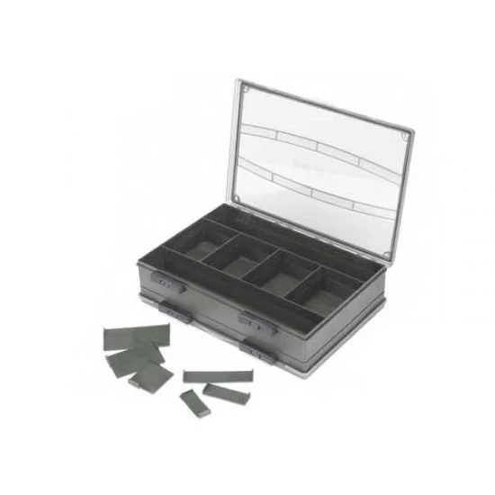 De Large Double F-Box is gebaseerd op een uniek dubbelzijdig ontwerp waardoor de opbergruimte gemaximaliseerd wordt en de opgeborgen items gemakkelijk uit te nemen zijn. De spuitgegoten kunststoffen constructie zorgt voor een stevig en duurzaam ontwerp met kenmerken zoals waterdichte deksels, duurzame scharnieren en betrouwbare schuifsluitingen. De compartimenten zijn verstelbaar in grootte door middel van de bijgeleverde verdelers. Deep partition Large x 4 Deep partition Medium x 4 Deep partition Small x 8 Shallow partition Large x 4 Shallow partition Medium x 4 Shallow partition Small x 4.