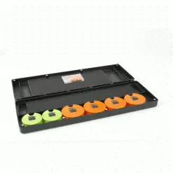 Onderdeel van een nieuw en innovatief, uitwisselbaar rig opslag systeem Uitgerust met 1 large ‘double-ended’ rig board en 1 large Magnetic Chod Disc en ‘boom’ storage board Geleverd met 2 Short Chod Discs en 4 Standaard Chod Discs Op de meegeleverde Discs kunnen haakmodel, haakgrootte en trekkracht van de rig worden genoteerd Inclusief 6 magnetische disc insert die in een Chod Disc worden geplaatst om de disc in de Rig Box te fixeren Meegeleverde Chod Discs kunnen worden vervangen dor de Edges Ready Tied Chod Rig discs Geprofileerde hookbars zodat de rigs niet kunnen verschuiven Hoogwaardig EVA foam voor stevig vastzetten van de pins De ‘boom’ storage is voorzien van kleine, gegoten haakjes om de lus of wartel van de ‘boom’ in te bevestigen – het andere uiteinde wordt gefixeerd met een pin Magnetische scharnieren zodat de twee boards afzonderlijk kunnen worden gebruikt Compatible met de F-Box Magnetic Large Rig Box Lids Magneten verzekeren een goede, stevige sluiting Gegoten liniaal voor nauwkeurig maken van rigs Inclusief 60 pins.