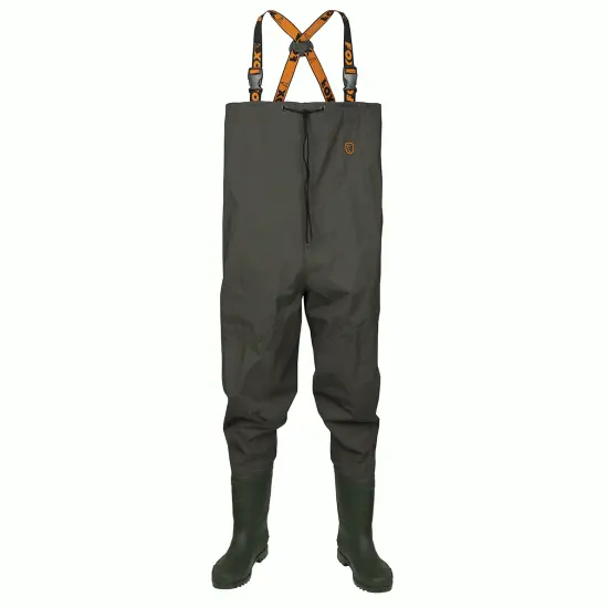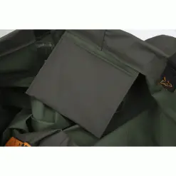 Duurzaam nylon taslon materiaal Volledig getapete naden Heavy duty PVC laarzen Geprofileerde zolen Verstelbare, elastische schouderbanden Quick release gespen Borst trekkoord Groot borstvak aan binnenkant 60% Polyvinylchloride, 40% Nylon Taslon.