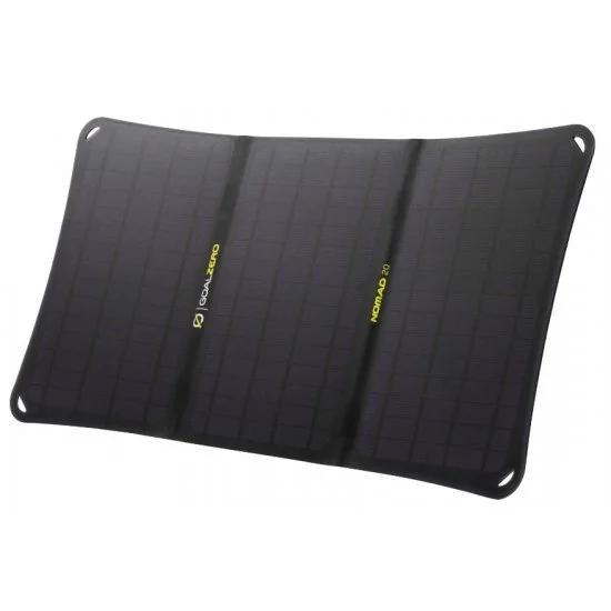 Nomad 20 wurde für eine reibungslosere Solarladung entwickelt und verfügt über ein integriertes Goal Zero Flip-Dock und einen verstellbaren Ständer, der für mehr Stabilität einrastet und einrastet.