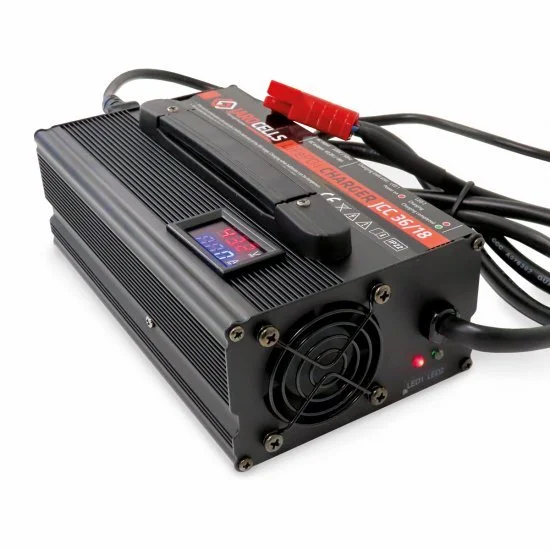Jarocells 36V18A Ladegerät IP22 mit Ampere- und Voltmeter.
