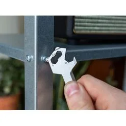 Der Wolf ist ein kleines, aber handliches Multitool zum Anbringen am Schlüsselbund und enthält einen Flaschenöffner, einen Schlitzschraubendreher, einen Kreuzschlitzschraubendreher, einen Dosenöffner und einen Schraubenschlüssel Nr. 7, 8. Ein praktisches Werkzeug, das Sie jeden Tag mitnehmen können.