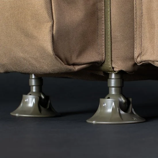 Der Carryall steht auf vier selbstnivellierenden Schlammfüßen. Dies sorgt nicht nur für Stabilität, sondern hebt auch die Basis des Carryalls vom Boden ab, was ihn ideal zum Angeln an „nicht so idealen“ Stellen macht. Compac-Gepäck wird aus hochwertigen Stoffen und Komponenten in Militärqualität hergestellt, wodurch ein organisiertes, starkes, leichtes und langlebiges Gepäcksystem entsteht.