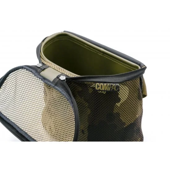 Der Mehrzweck-Compac-Caddy trägt bequem bis zu 3 kg Köder und verfügt über einen voll verstellbaren Hüftgurt, der das Anbringen von Ködern mit einer Schleuder oder einem Wurfstock erleichtert. Der aus strapazierfähigem Camo-Mesh gefertigte Caddy kann auch als Air Dry Bag verwendet werden, um Boilies länger frisch zu halten. Der herausnehmbare EVA-Einsatz macht es auch perfekt zur Aufbewahrung von Partikeln oder zur Verwendung als Wasserschale beim Fischen oder Balancieren von Rigs.