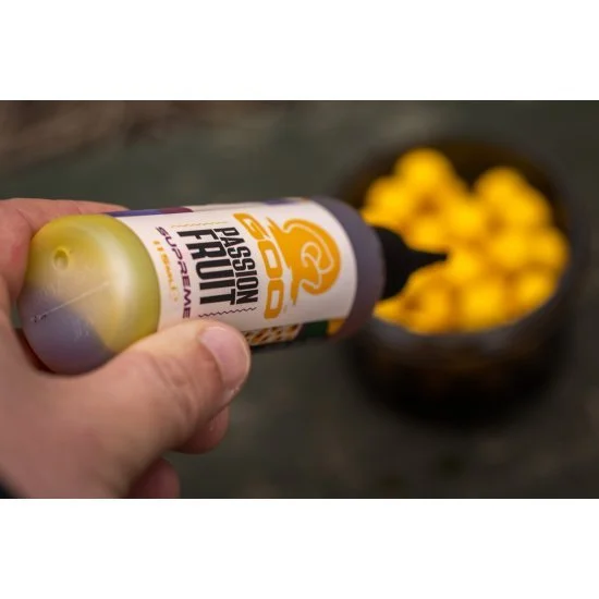 Passionsfrucht unterscheidet sich ein wenig von Obst, da sie sowohl sauer als auch süß kombiniert und ein leicht blumiges Aroma hat, das sie von allem anderen unterscheidet. Die Süße ist delikater als bei manchen Früchten, und die Säure ähnelt Zitrusfrüchten, was für ein natürliches Gleichgewicht sorgt, und die Karpfen – und Angler – scheinen es zu lieben, wenn man den Ergebnissen während der Tests glauben kann. Da es sich um eine Supreme-Version von Goo handelt, hat es eine dünnere Konsistenz, was es ideal macht, um es tief in Ihren Hakenköder einzuweichen, wenn es für einen längeren Zeitraum darin belassen wird, wodurch sichergestellt wird, dass es viele Stunden hält, nachdem eine Duftspur austritt. du bist ausgestoßen. In Bezug auf die Farbe ist es die Art von leuchtendem, dunklem Gelb, das Sie auf der Innenseite einer reifen Passionsfrucht erwarten würden.