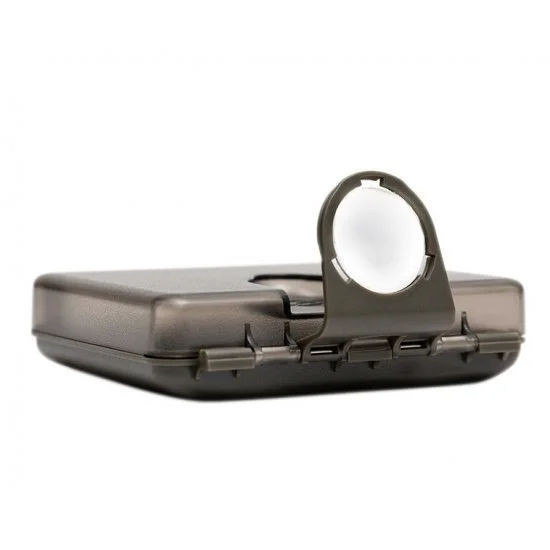 Der Hook Safe selbst besteht aus schlagfestem Hartplastik und verfügt über einen Magnetverschluss, um sicherzustellen, dass er sich während des Transports nicht öffnet, aber bei Bedarf sehr einfach zu öffnen und zu schließen ist. Der Deckel verfügt über eine eingebaute hochklappbare Lupe, mit der die Hakenpunkte überprüft werden können, und wird bei Nichtgebrauch durch einen Magnetverschluss an Ort und Stelle gehalten.