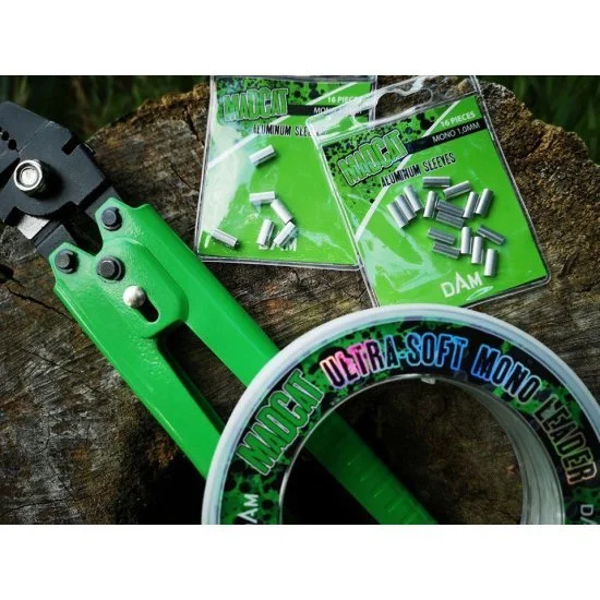 Crimpwerkzeug aus Kohlenstoffstahl, ideal zum Crimpen von Aluminiumhülsen. Mit seitlichem Stahldrahtschneider (schneidet auch dicke Mono mühelos). Vier Schlitze für unterschiedliche Hülsengrößen (0,1 bis 2,2 mm). Ideal für die Herstellung von Waller-River-Rigs oder Spinnvorfächern. Extra lang (25 cm), für mehr Hebelwirkung.