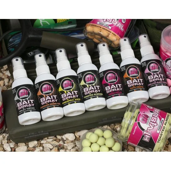 De Mainline Bait Sprays zijn ontwikkeld om te zorgen voor een instant boost aan attractie en extra hoeveelheid flavour toe te voegen aan haakaas, boilies, pellets en andere vormen van aaspresentaties. Door gebruik te maken van exclusieve en bewezen flavour combinaties, zoetstoffen en vloeibare attractors uit de Hi-Visual pop-up range is het mogelijk gemaakt een range Bait Sprays te ontwikkelen die de attractiviteit van je haakaas vergroten. De gekozen flavour labels mathcen onze populaire range van Hi-Visual pop-ups perfect, maar zijn ook uitermate geschikt voor ander type aas waarbij een extra boost gewenst is.