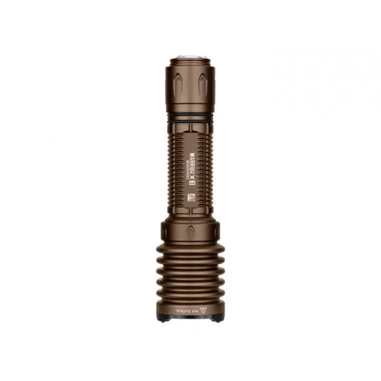 Die Warrior X 3 ist eine taktische Fernlicht-Stirnlampe mit hochwertiger Konstruktion, außergewöhnlicher Leistung und vielen nützlichen Funktionen. Die Lampe wird mit zwei austauschbaren Griffringen geliefert und ihr strukturiertes Gehäuse bietet zusätzlichen Halt bei allen Wetterbedingungen. Der hintere Schalter hat zwei Positionen, je nachdem, wie weit dieser Schalter gedrückt wird. Dieser Schalter dient auch als magnetische Aufhängung und Ladepunkt für das mitgelieferte Ladekabel (MCC3).