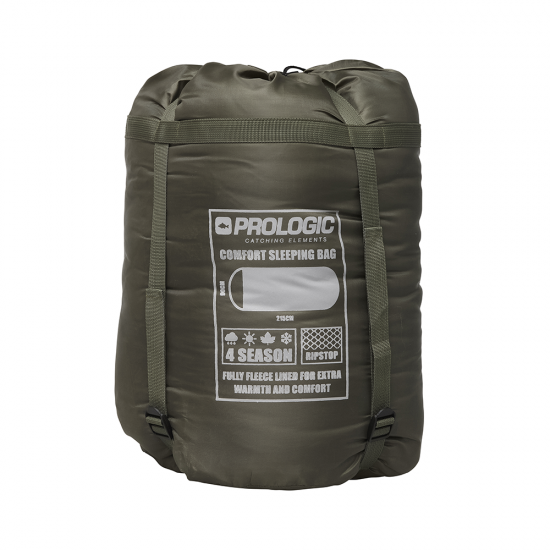 Der Comfort-Schlafsack bietet das Beste an Wärme und Komfort in einem gut durchdachten Paket und ist ein Muss für jeden Karpfenangler, der nachts angelt. Dieser Schlafsack besteht aus einem ultraleichten, atmungsaktiven Ripstop-Gewebe und verfügt außerdem über eine statisch platzierte Hohlfaserfüllung, die zur Optimierung der Isolierung beiträgt und einen besseren Rundumkomfort bietet. Die Tasche kann über konturierte elastische Kappen sicher am Kopf- und Fußende Ihres Bettstuhls befestigt werden, während ein zentral positionierter und verstellbarer Sicherheitsgurt die Bewegung weiter reduziert. Die strapazierfähigen und leicht zugänglichen Reißverschlüsse auf beiden Seiten werden von Sicken entlang der Seite begleitet, die dazu beitragen, ein Verhaken zu verhindern, wenn Sie schnell zu Ihren Ruten gelangen müssen. Diese Tasche ist jedoch so bequem, dass es eine Herausforderung sein kann, aufzustehen, wenn ein Wecker klingelt!