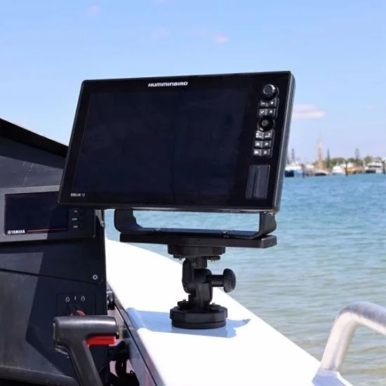 HEXX-Basishalterungsdesign mit 90°-Basisdrehung, 90°-Plattformdrehung und 180°-Neigungsbereich. Diese 3 Einstellachsen bieten eine Lösung für die komplexesten Fischfinder-Montageorte auf Ihrem Boot, wie z. B. Konsolen und Bugmontagelösungen.
