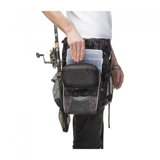 Deze Urban Hip Back is ideaal voor de struinende visser. Voorzien van een hardcase voor het opbergen van je zonnebril en hengelhouders aan beide kanten. Deze heuptas is volledig te openen zodat je over makkelijk bij kan.