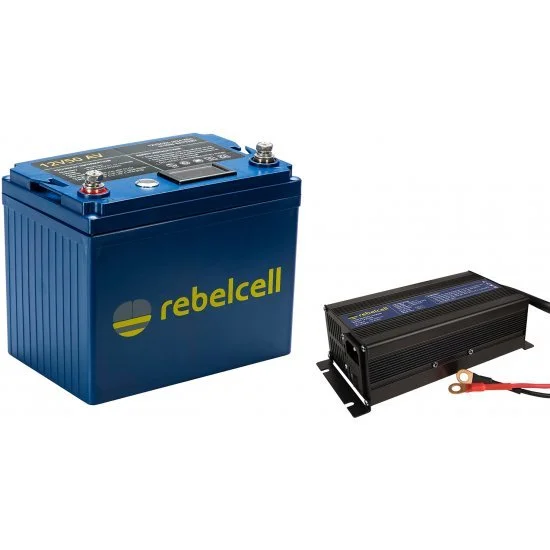 Komplettpaket mit 12V50 Angling Li-on Akku und passendem Li-ion Akkuladegerät. Mit digitaler Batterieanzeige (% Ladezustand und Spannung). In der Praxis ersetzt er einen Bleiakku bis 12V105Ah.