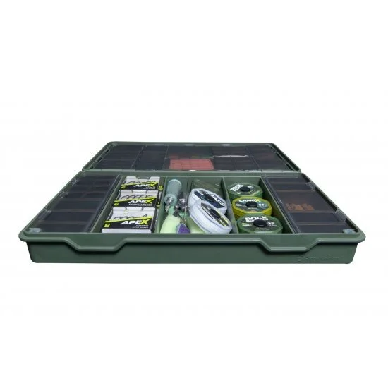 Bewahren Sie dank der Armory Lite Tackle Box all Ihre kleinen Geräte an einem Ort auf, ohne zu viel Platz in Anspruch zu nehmen. Mit 57 Aufbewahrungsfächern ist Platz für alles, was Sie in eine Tacklebox packen möchten, und bleibt dennoch eine leichte Tacklebox-Option. Ob Wirbel, Anti-Tangle-Sleeves, Haken, Vorfachmaterial, PVA, Scheren oder andere Werkzeuge zum Binden von Rigs, Sie können sicher sein, dass im Armory Lite Platz dafür ist. Der Deckel hat außen Linealmarkierungen, einen Magnetverschluss und ist dank seiner robusten ABS-Kunststoffkonstruktion witterungsbeständig und nahezu unverwüstlich. Die sicheren Fächer sorgen für eine super Ordnung und optimieren gleichzeitig den eigenen Stauraum. Die Armory Lite Tackle Box wurde für Angler entwickelt, die gerne alles Nötige mitnehmen, aber dennoch so leicht wie möglich reisen möchten. Das Armory Lite ist mit der RidgeMonkey Ruggage-Reihe kompatibel und passt perfekt in das Compact Accessory Case 330.