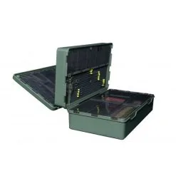 Die gleiche Armory Tackle Box, die wir alle kennen und lieben, aber jetzt mit einem neuen Deckel, der zusätzliche 38 kleine Aufbewahrungstaschen bietet. Perfekt zum Aufbewahren von Wirbeln, Rig Ringen, Hakenperlen und mehr. Der neue Armory Pro-Deckel verfügt außerdem über ein Lineal an der Außenseite, um jedes Mal genaue Rigs zu binden. Jeder Angler möchte sein Tackle so gut wie möglich organisieren und das Armory Pro hilft Ihnen dabei. Es gibt insgesamt 67 Aufbewahrungsfächer in verschiedenen Größen, die eine Vielzahl von Gegenständen aufnehmen können, wie z. Im Armory Pro hat alles ein Zuhause. Die Armory Pro Tackle Box ist aufgrund ihrer robusten ABS-Kunststoffkonstruktion witterungsbeständig und langlebig. Mit drei großen zusätzlichen Rigboards können Sie sicher sein, dass Sie unabhängig von Ihrem Angelstil auf alles vorbereitet sind.