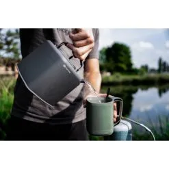 Der RidgeMonkey Square-Kettle definiert traditionelles Denken neu und bietet eine frische, neue Interpretation eines Produkts, das seit Hunderten von Jahren praktisch unverändert geblieben ist. Die große Oberfläche der quadratischen Bodenplatte sorgt dafür, dass das Wasser besonders bei Verwendung mit dem RidgeMonkey Quad Connect Stove schnell kocht, während die klappbaren Griffe und das ergonomische Design eine Aufbewahrung auf engstem Raum ermöglichen. Der Square Kettle ist eine perfekte Ergänzung zum RidgeMonkey Kochgeschirr-Sortiment und kann auf jeder direkten Wärmequelle verwendet werden. Erhältlich in Small (0,5 Liter), Large (1,1 Liter) und XLarge (2 Liter)