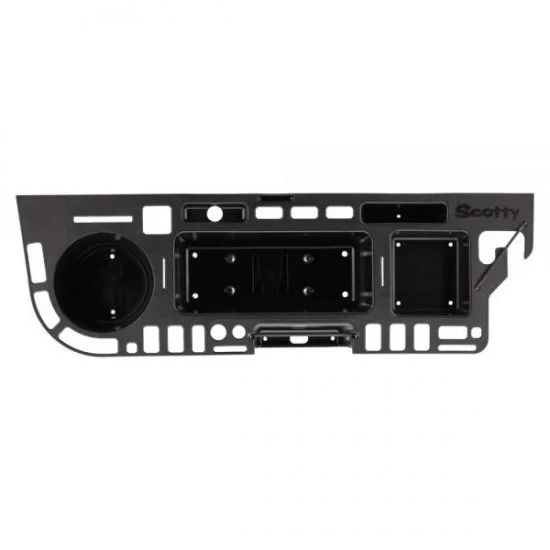- Eine integrierte Magnetablage verhindert, dass Haken und Köder verstreut werden oder verloren gehen, und integrierte Halterungen für Mobiltelefone, Getränke und Angelruten halten diese Gegenstände dort, wo sie gebraucht werden.