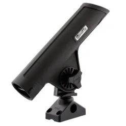 Rohrhalter mit vorderem Schlitz und abnehmbarem Kardanstift für jede Ruten- und Rollenkombination. Faserverstärktes Nylon von technischer Qualität, Belastbarkeit und Zuverlässigkeit. Kommt mit Seitendeckhalterung. Alle nachmontierten Scotty Rutenhalter sind vollständig nach oben und unten verstellbar und um 360 Grad horizontal drehbar. Entwickelt für Lachs und andere große/mittlere bis kleine Fische.