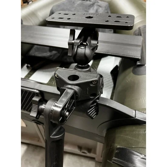 Eine maßgeschneiderte Lösung von Team Outdoors zur einfachen Montage großer Tiefenmesser wie Raymarine Element, Aixom, Garmin, Humminbird oder Lowrance Hook Reveal, Elite FS oder HDS am Heckspiegel Ihres Beiboots. Das Set ist komplett und kann Bildschirme von 7 bis 12 Zoll aufnehmen. Der Transducer Rod lässt sich mit 2 Handgriffen zerlegen, um ihn ganz kompakt transportieren zu können. Die Gleitscheiben sorgen dafür, dass der Schwinger im unwahrscheinlichen Fall einer Boden- oder Hindernisberührung nicht beschädigt wird.