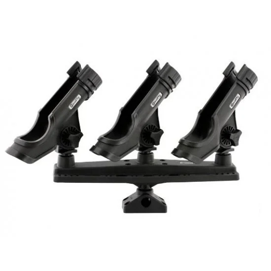 Der Triple Rod Holder wird mit drei Power Locks geliefert. Der universelle Halter kann fast jedes Ruten- und Rollensetup aufnehmen und hat einen Sicherungsring an der Vorderseite, um den Verlust der Rute auf Reisen zu verhindern. Beinhaltet eine Seiten-/Deckhalterungskombination, die direkt an der Dreifachhalterung befestigt und um 360 Grad gedreht werden kann. Triple Mount wird komplett mit einem praktischen Werkzeug und Köderhalter geliefert, um die Dinge organisiert zu halten. Jeder Power Lock Rod Holder kann um 360 Grad gedreht und einzeln nach oben oder unten geneigt werden, um ultimative Vielseitigkeit zu erzielen. Entwickelt als Mehrzweck-Rutenhalter für eine Vielzahl von großen/mittleren oder kleinen Fischarten und praktisch jedes Boot.