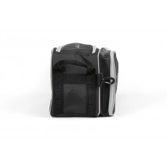 Abmessungen von 80 cm x 20 cm x 24 cm für 2 der größten Rutenrollen. Große Vordertasche für Zubehör und Beine. Separates Grifffach für Rollen ohne Klappgriffe.