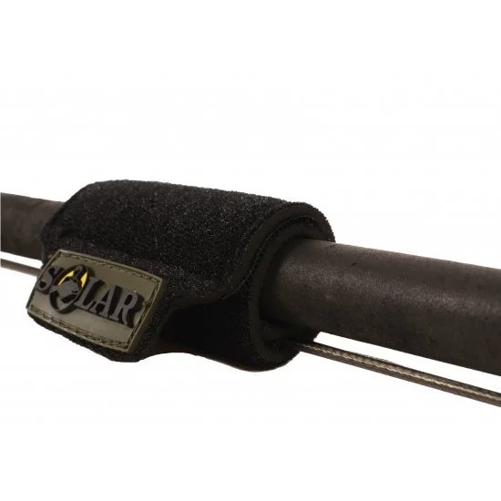 A pair of neoprene-backed, Velcro rod wraps. Each pair has one wide wrap, for your rod butts, and a thinner wrap for the rod tips. Black, with a rubberized Solar logo.