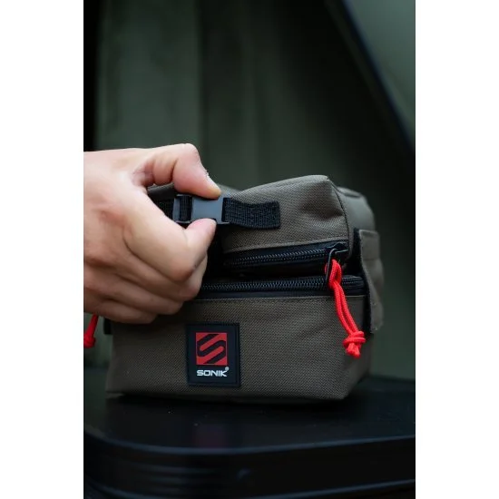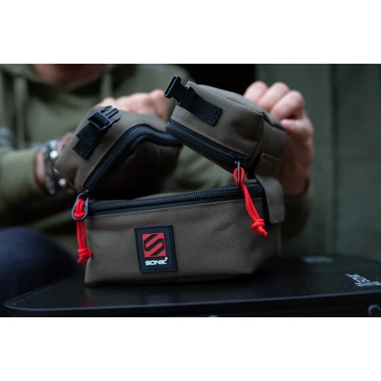 Kompaktes Taschenset mit ausklappbarem Design für einfachen Zugriff. Das Hauptfach hat zwei Trennwände mit Klettverschluss und gepolsterte Seiten für zusätzlichen Schutz. Abriebfestes und wasserabweisendes 600D-Gewebe mit wasserdichtem HD-Basismaterial. Hauptfach B16 T16 H8CM. Erweiterbare Taschen B16 T8 H5CM.