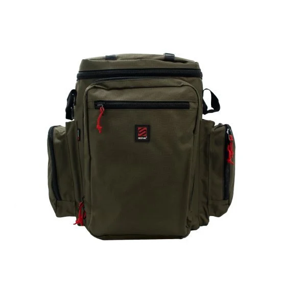 Extrem vielseitiger Angelrucksack mit vergrößerten Front- und Seitentaschen mit Reißverschluss. Gepolsterter Gurt mit Brustgurt für zusätzlichen Komfort. Mit Bankstick-Taschen auf jeder Seite mit elastischen Halterungen. Innentasche mit Reißverschluss zur sicheren Aufbewahrung. Externe Zubehörgurte und Griffe und wasserdichtes HD-Basismaterial. Abriebfestes und wasserabweisendes 600D-Gewebe, ausgestattet mit übergroßen Nr. 10-Reißverschlüssen mit einfachen Zügen.