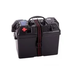 Handlicher Batteriekasten mit Deckel mit vormontierter Verkabelung für Batteriepolanschluss, 2x12V-Steckdose, externer Flügelmutteranschluss zum Anschluss von z. B. Elektromotor oder Batterieladegerät. Die Batteriebox ist außerdem mit einem praktischen Batterietester ausgestattet; Per Knopfdruck werden Sie über den Batteriestatus informiert. Diese Batteriebox ist daher die ideale Lösung für kleine Schiffe ohne festes Bordnetz und Situationen, in denen kein direktes 12-V-Netz verfügbar ist, z. B. bei Verwendung eines Elektromotors. Der Batteriekasten ist zur Absicherung mit 2 Glassicherungen (bei Art.-Nr. 14.641.105) oder 2 Sicherungsautomaten (Art.-Nr. 14.641.106) ausgestattet. Die 12V-Steckdosen sind mit 15A abgesichert und der Elektromotoranschluss mit 30A bzw. 50A Sicherung.