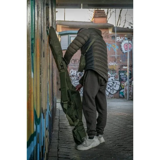 De 5 rod padded sleeve is een stevig, gewatteerd foudraal dat plaats bied aan 5 opgetuigde 12ft hengels met 50mm start ogen en Big pit molens.