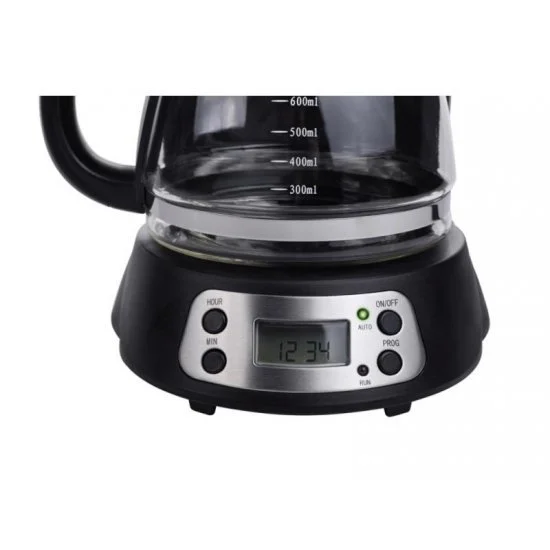 Eine elegante Kaffeemaschine mit digitalem Bedienfeld. Diese Kaffeemaschine ist für 6-8 Tassen Kaffee pro Sitzung geeignet. Die Kaffeekanne aus Glas wird auf eine Warmhalteplatte gestellt, um extra lange heißen Kaffee zu genießen. Darüber hinaus ist die Kaffeemaschine mit einem Anti-Tropf-System, einer Wasseranzeige, einer Digitaluhr und einem Timer sowie einem permanenten und abnehmbaren Filter ausgestattet. Diese Kaffeemaschine hat eine Leistung von 700 Watt und arbeitet mit 230 Volt.