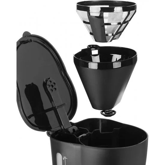 Eine sehr kompakte und elegante Kaffeemaschine. Die Kaffeemaschine bereitet maximal 6 Tassen Kaffee pro Sitzung zu. Verfügt über einen praktischen Krug, einen Dauerfilter, ein Erwärmungssystem und ein Anti-Tropf-System. Die Kaffeemaschine ist in mattem Schwarz mit einer Glaskanne ausgeführt. Dank seiner praktischen Größe ist dieser Kaffeebereiter ideal fürs Camping, unterwegs oder auf dem Boot. Diese Kaffeemaschine hat eine Leistung von 600 Watt.