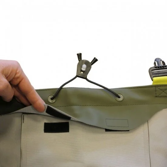 - Sicherheitskordelzug um die Brust (nur Wathose)
